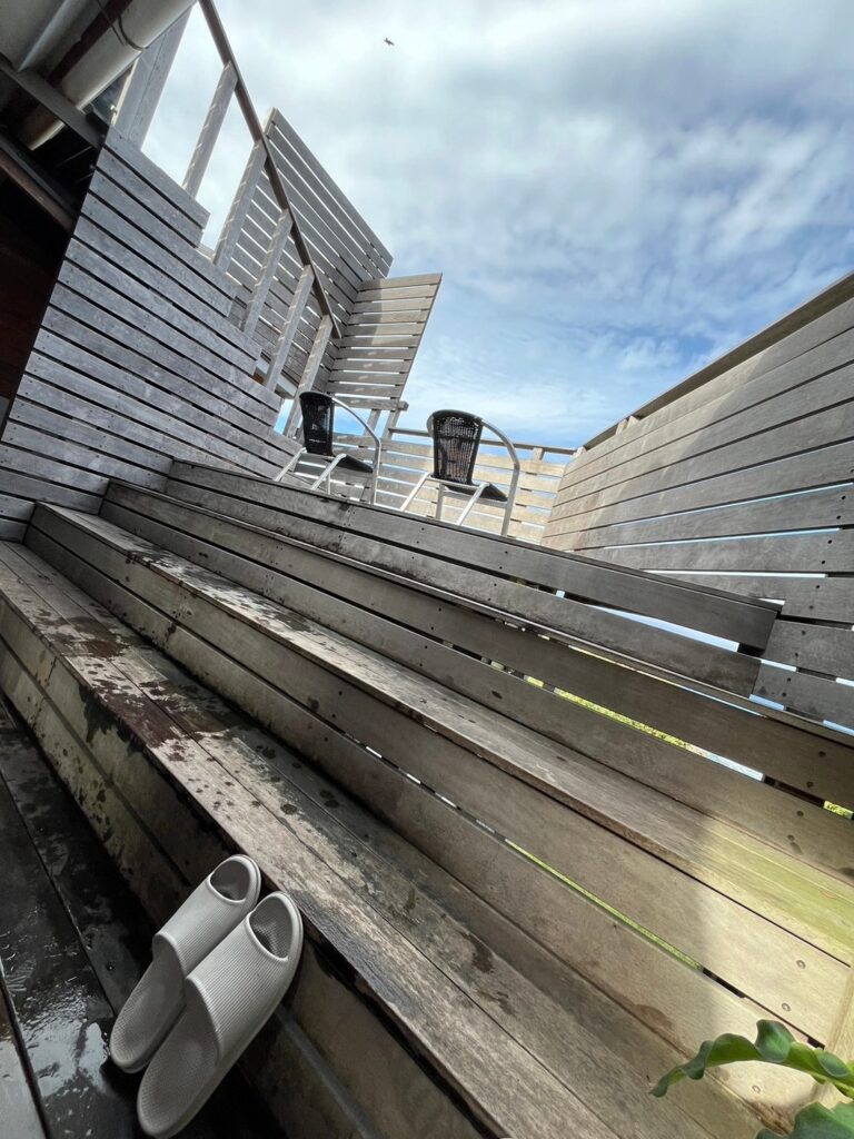 サウナと水風呂を交互に楽しんだ後、外のデッキチェアに座り、海を眺めながらひと息。心地よい風が吹き抜け、波の音が心を落ち着けてくれます。時間がゆっくり流れ、普段の喧騒から完全に解放された瞬間でした。