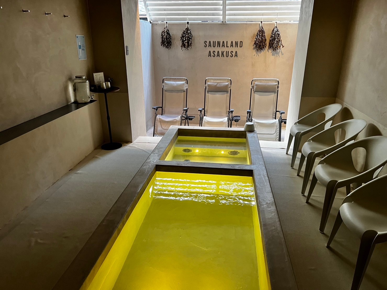 サウナ室を出るとすぐ目の前に水風呂があり、温度は約9℃。浅草の空気を感じながら入る水風呂は、